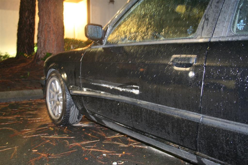 Guy didn't see my car while backing out, I guess the good thing is it's the door only. But it's dented in, down to the bare metal. Other car was a dodge suv with the railroad track equipped bumper hardware...
