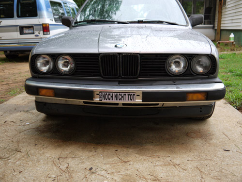 After two months of frustrating reconstruction, my '87 325e dedicated AutoX car had its first outing yesterday. I had to have something on the car to celebrate it's rebirth...