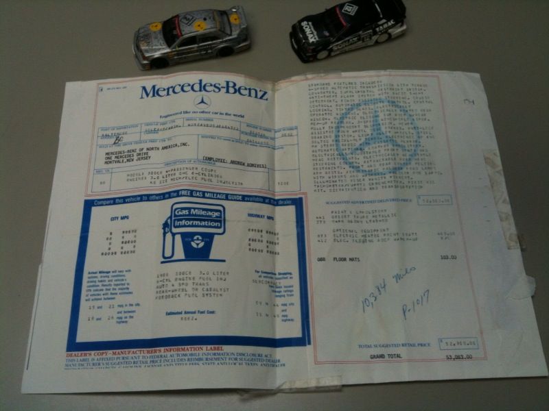I picked up this mint 1988 300CE w124 coupe few weeks ago. Not a spec of rust, all service history records since day 1, original window sticker, amazingly maintained ! Car was $53k in 1988 when brand new E30 M3 was $33k ...