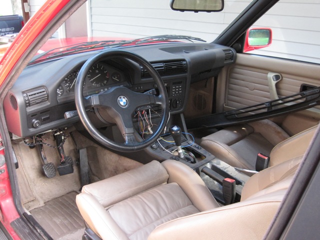 Turns out that the red car is amazingly clean body/chassis. Front jack points are still solid. :D zinno paint isn't faded anywhere, no dents, no accidents, interior needs a good vacuuming, but otherwise nice. all electrics work, non-cracked dash, M-tech str wheel, 14"weaves with practically new tires. 1 big spot of rust in battery well, but that was the only place I found rust. LOTS of receipts, and some history (car spent some time in Singapore). Only major issue is the car will over-heat if driver too hard or too long (weird thing, the seller indicated if it was driven easy, it wouldn't overheat...???). After looking through the receipts, I'm 99% confident the overheating is due to a bad head - owner in mid 90's let the timing belt break, bent valves etc - valves replace but all the service records after that indicated overheating issues. My guess is a cracked head... Regardless, a great start for the future run DD. Just need to source a replacement head and it'll be dependable road-worthy.