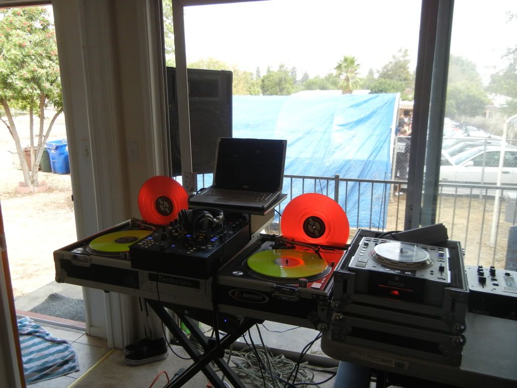 The DJ set-up had to go inside thankz to the rain