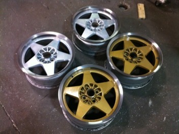 The car is rolling on 16x7.5 et25 momo 5 stars with 225/50/16s on all four corners. I rub a little in the front but I know I have incorrect tires. I polished The lips and painted the centers gold. Rims came with the car but they needed some tlc lol.