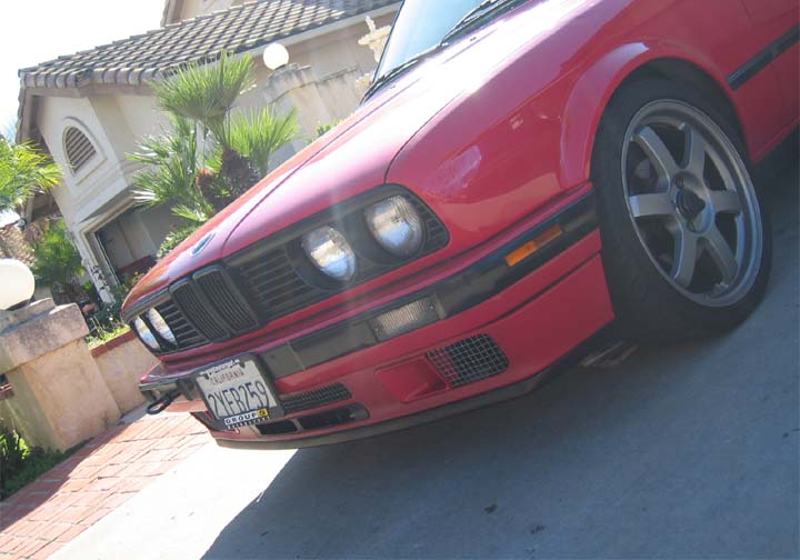 Thanks for the compliment on the wheels but they are coming off and being repainted black/red lips so ill be rockin my weaves for a few weeks. I get the idea, i'll take off the mesh tomorrow, im just waiting for my iS lip to come in so they all can be painted and if someone has a drivers side foglight blank for a 91 e30 production date 09/90 or some foglight buckets let me know.
