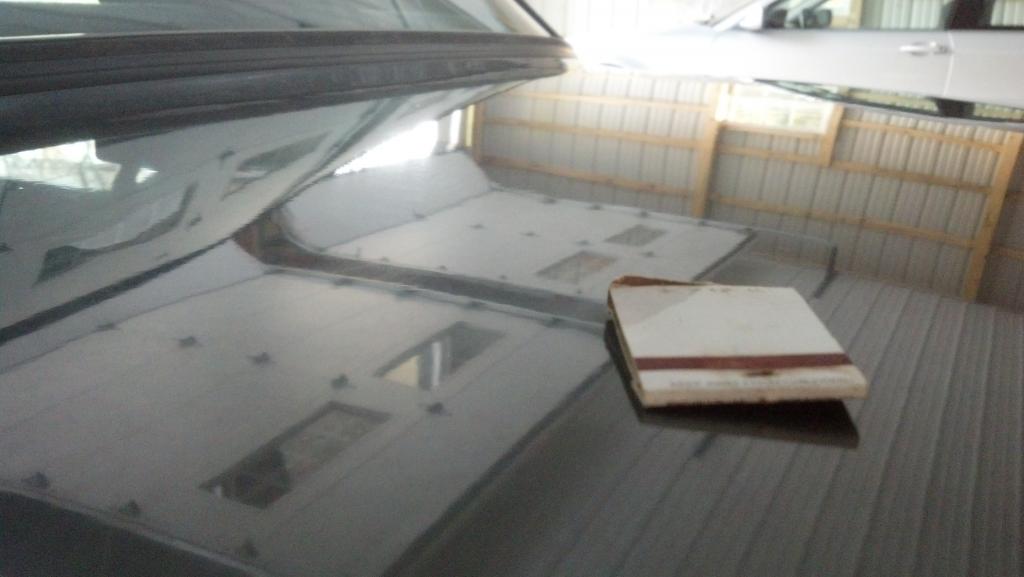 I never did take a pic of it installed but I do like the way it feels. Tightened up the steering wheel just ever so slightly. Maybe it's all in my head. Anyway I took the car home a gave it a bath. Clay barred the hood, roof, and trunk lid. Used a light cutting wax from meguires and took a couple pics, tomorrow I will put the top cat of wax on it. It's one of those three stage things. Here is a shot of the trunk lid, match book for reference.