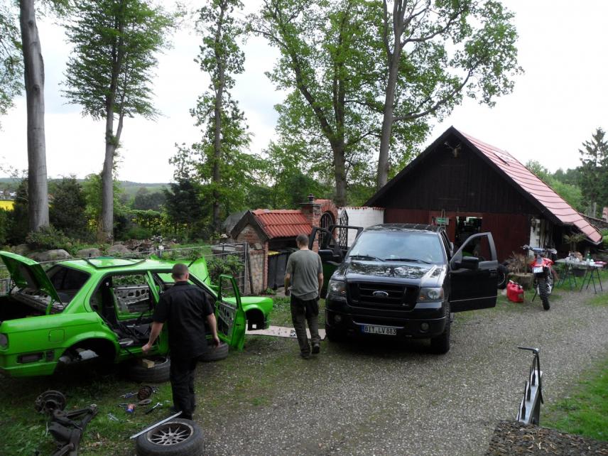 So, on Friday I made my road trip with a friend to pick up my complete M30B35 swap from a guy who lives in Belm; about 4 hours away. Thankfully I didn't have to g to work that night and my friend was good enough to let me use his truck and come with me ( though I ended up getting him in trouble with his wife for not getting home until 0030). Anyhow, I won a complete M30B35 swap in German ebay; it came with everything . I mean EVERYTHING; ECU, already modded wiring harness, 3 gauge cluster with sensors, radiator, engine mounts, headers, custom built exhaust, transmission with new clutch, modded driveshaft, and cooling fan with custom mount and wiring relay. Here are some pics of the journey...