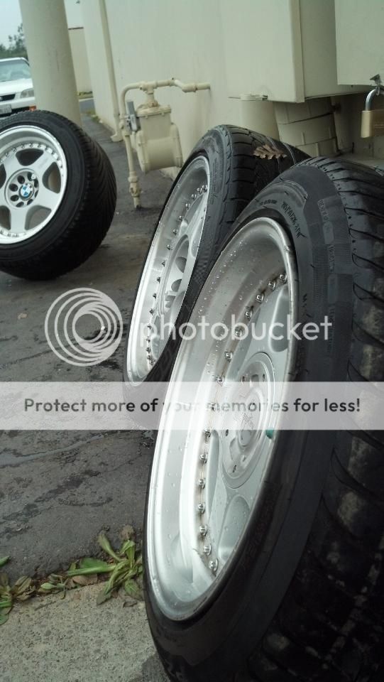 Man it has been forever since I have updated my thread. Been kind of discouraged from spending money or working on the car since I got my buell. Plus my free time is taken up by battlefield 3 since I upgraded to premium. What got me going is I found some Keskin kt1s on craigslist. Staggered setup 16x9/16x7.5, not sure of the offset. I put the wheels on the car and now its really motivated me to get my suspension rebuild going and coilovers installed. I am a bit ashamed of how she looks but here she is.