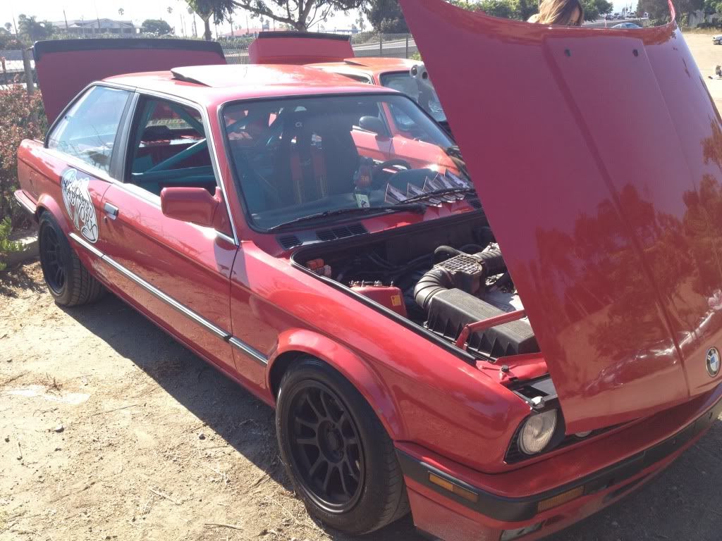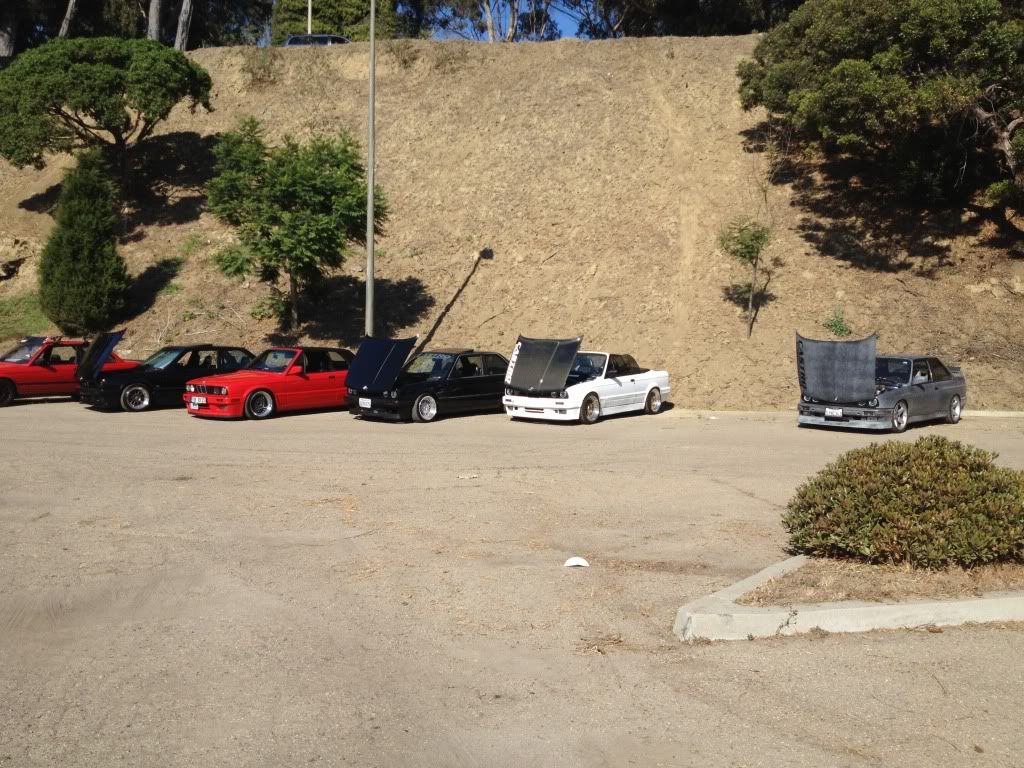 I showed up super late, and was there for about 45 minutes before the GF and I got super hungry and left...the cold hamburger w/o cheese wasn't cutting it lol. Here are some quick, albeit shitty iphone pics I took. I was the white vert with the red top and white steelies.