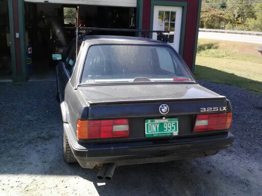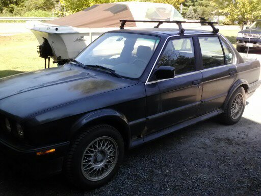 ok so this is my new ride to get me to and from school. she needs a little bit of work but as far as the exterior i plan on getting rid of the rust. thats my biggest priority. interior was thrashed from the prev. owners dog having a field day inside. but most of it was replaced it just doesnt have a roof lining. as far as under the hood goes just the basics, flush fluids, change oil, check belts, change plugs, like i said this is just my ride to and from school for a while. in the mean time i have my other E30 to work on during the winter. im open to all questions and comments.