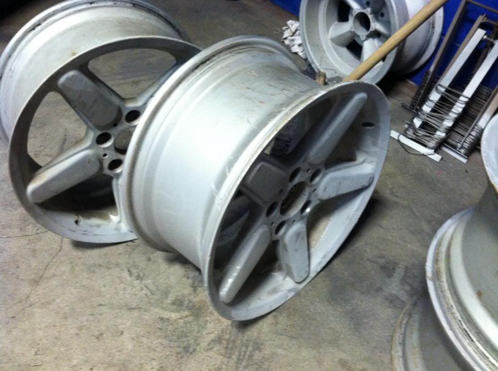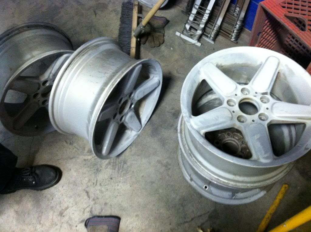 Dropped by today just to check up on progress. Sanded down the wheels a little, more sanding to do tomorrow and powder. Get them back finished tomorrow late afternoon.