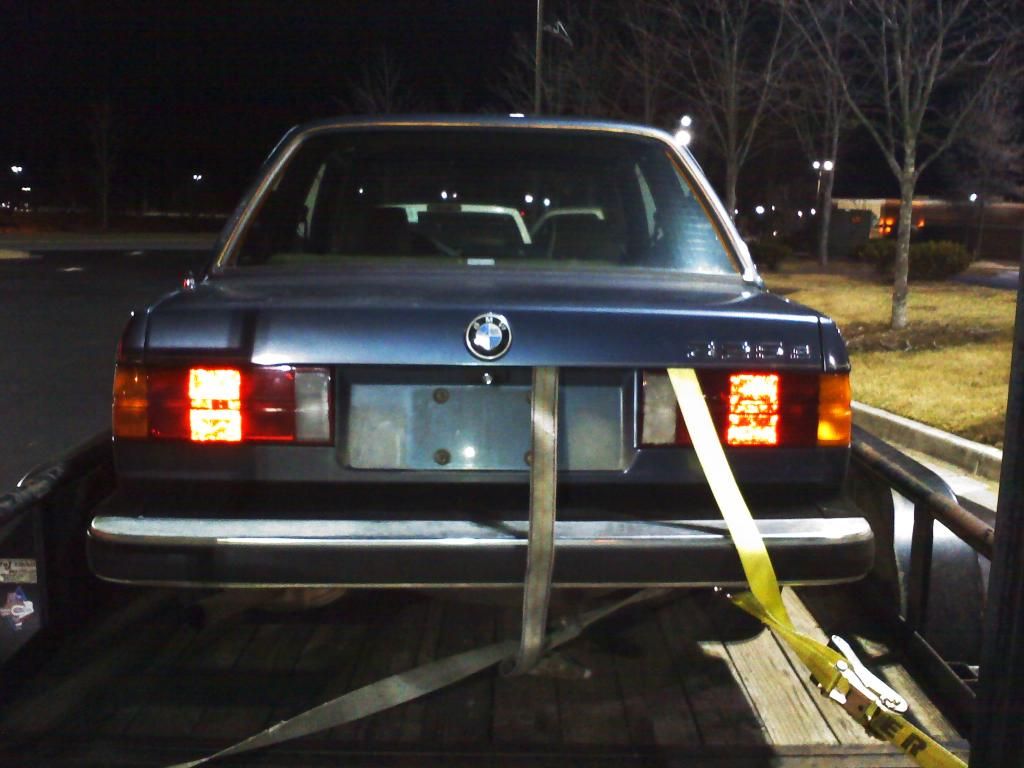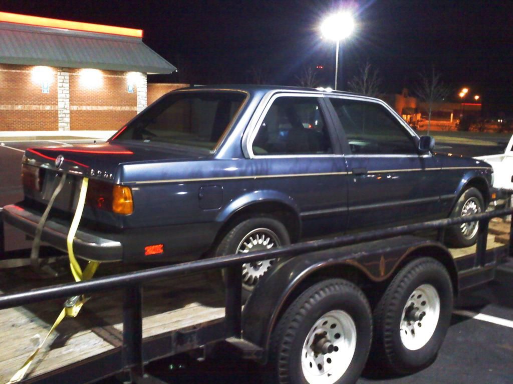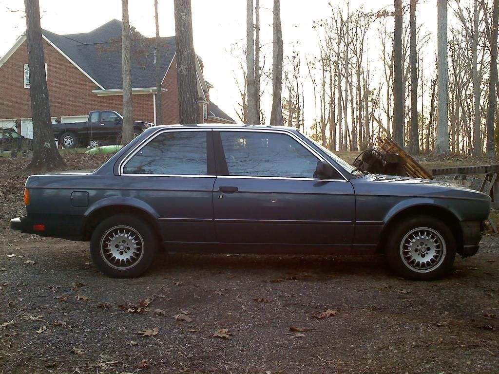 Well I finally took some pics to post up. Its an 85 325e w/ euro bumpers, valance, grills, and headlamps, Kosei K1s wrapped in 225/50 rubber. Its lowered on GAZ coils up front and 5in Hypercoil springs w/ no adjsuters in the rear, also has IE sways. She needs paint bad, most of the clear is comin off, but a blast to drive.