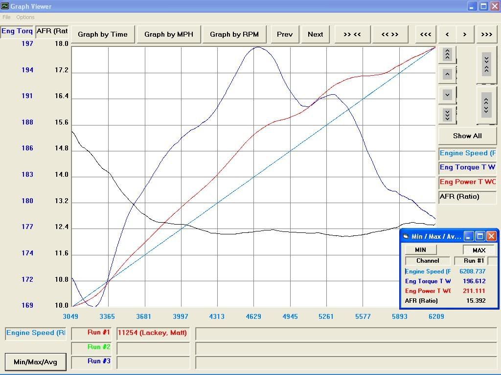 Those numbers are pretty good for the mods you have done (basically maintinence).... Today we dyno'd my buddies m3.... we were pretty damn impressed with its 221.5 at the wheels, with a really good A/F ratio.