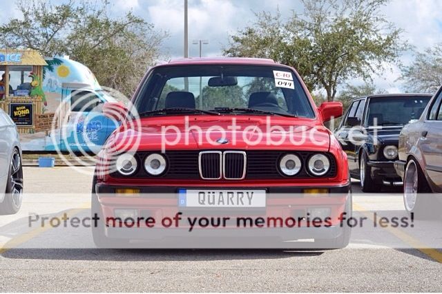 1988 325is imolarotII/ plastic bumper swap/ e36 m3-z3 2.8 5 lug swap/ e36 m3 bilsteins/ e36 m3 h&r race spring up front/ GC rear coilover / 21mm vert sway bar/ m3 offset bushing/ OEM bushings/ S3.73 rear end/ full black interior/ e46 sport seats/ BBS style 5
