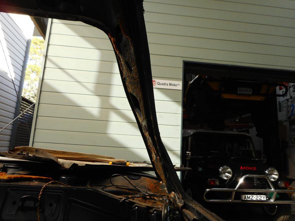 Basically the plan is for the panel beater to section the outer skin and remove that, put the thing on his laser aligner thing and pull the roof to correct position, then weld in the replacement C pillar skin that I have.