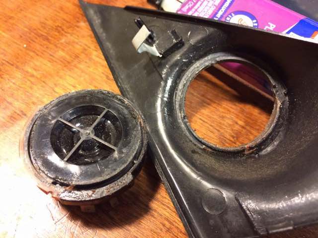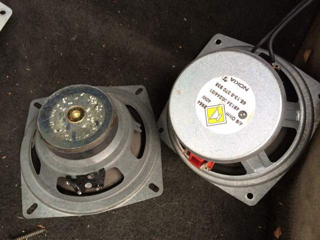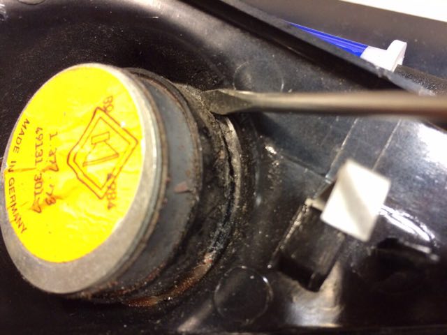 So here's more speaker trouble. I've popped out one of the tweeters. Chip the glue out.