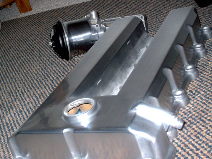 the oil filter housing wasnt fully detailed, just the upper portion - the valve cover however has all casting lines removed, the raised signature BMW lines removed, all blocked for straightness, then buffed like a mofo
