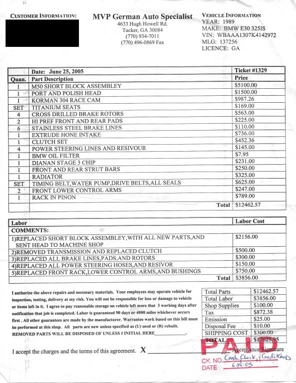 I'll post more pictures of the engine below, but basically what the car had done was take a m50 block and put it in the car, but kept the m20 look to it, as a sleeper. It has new race cam, pistons, custom headers, ecu, solid body mounts and some other things done to it. All I know is that this thing will haul and I have a ton of fun in it. I have no comparison to go off of as I have not driven a stock e30 but the guy I purchased it from said it was around 280hp.