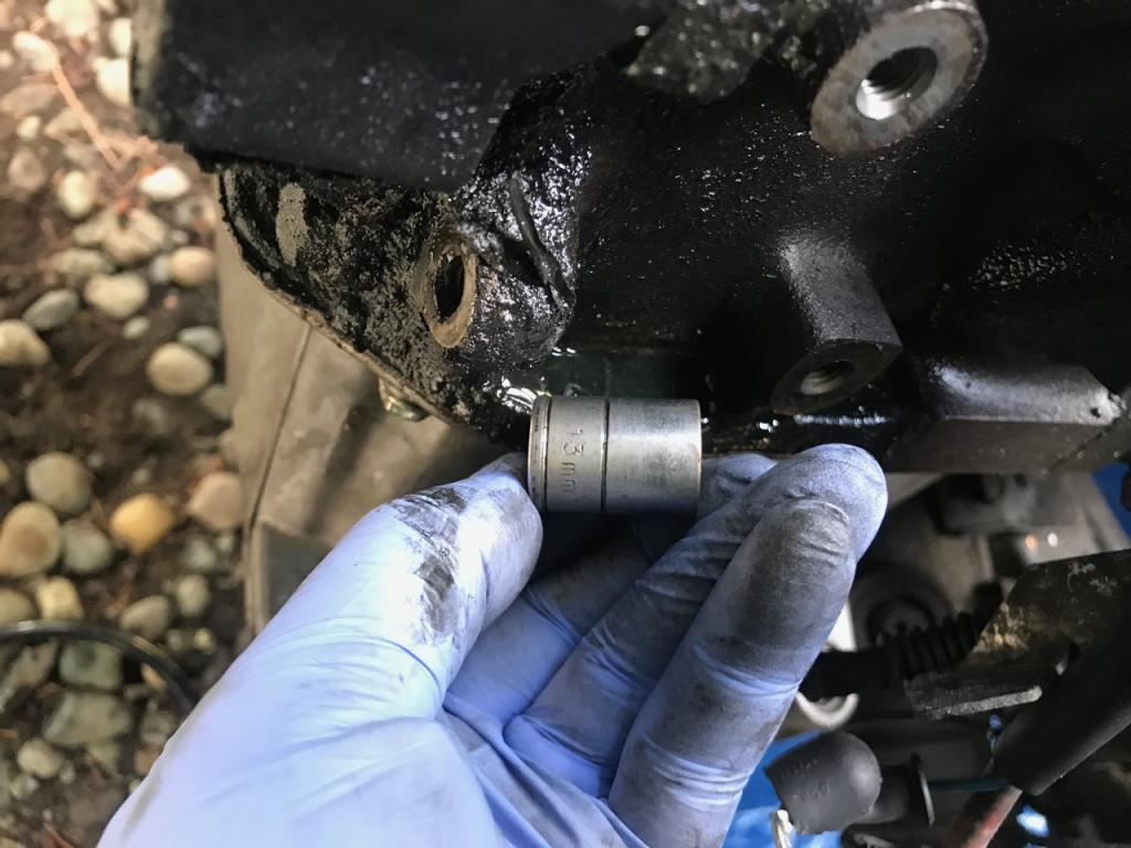 Oh, and this. I found a Taiwanese 1/4" drive 13mm socket lodged in the power steering pump's bracket. I am SO NOT SURPRISED to find an undersized cheap tool left behind in the assembly of this car. To right a wrong, if someone buys this car from me, they can expect to find high-quality, beefy American-made Snap-On pieces. Maybe even a curvy Gerhard wrench behind the headers!