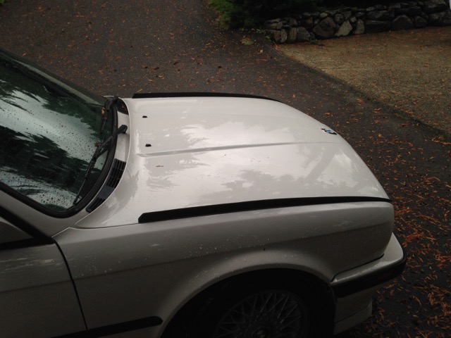 I've been keeping an eye out for these "wind splits," and when a nice guy in Portland was selling his, I snapped them up (thanks, Seth!). Yeah, it's a farkle, and the look isn't for erryone, but I think they balance out the front spoiler's splitter and the rear M-tech1 spoiler, especially on a white car.