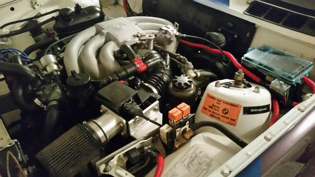 The engine is a 2.7 M20 with custom intake setup, forged Pistons, larger cams (still investigating spec), RC blue printed injectors, headers with straight through side exit exhaust, tuned ECU (still investigating), lightweight flywheel driven through an E30 M3 LSD.