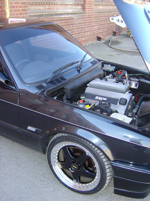 My good engine back in better days at home in my black E30 :