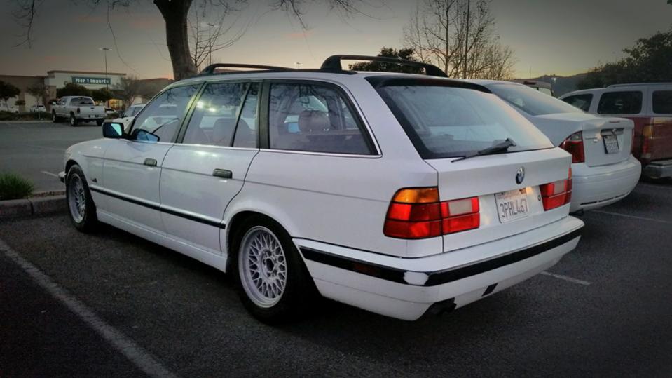 Hey r3v, just thought I'd share my newest project here, it's a '95 alpine 525it auto, 217k with a WORKING sunroof! There are however, some issues, all the door locks are fucked and I think that has something to do with fuse 44 and there's a wobble/shake from 50-55 and it feels like a wheel weight but it's going into a shop Thursday for a good go through/inspection. It's currently on coilovers and I think sits perfectly but it is very smooth still, I have no idea what brand it's sitting on but I know the springs are red, so yeah. I'll obviously be updating this thread as things start to happen once summer gets here but for now, it'll be as is for a long time. Onto the pictures!