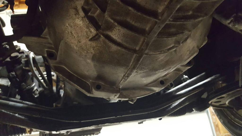 This is how the transmission looked when I got a close look. Missing all those transmission bolts.