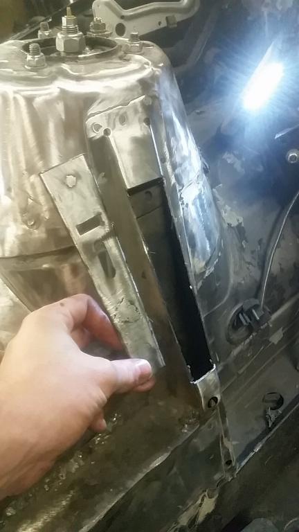 Started doing some welding, filling up some holes and trying to get some panels for the trays at the bottom of the shock towers mached up,