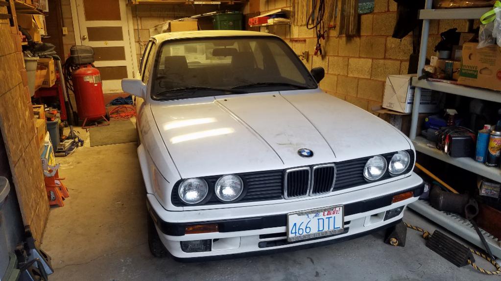 Hey all - it's been a decade or so since I logged into r3v (under a different username), I was a member of e30tech back in the day as well. I used to own a few 325iX models. I sold my last iX a few years ago (my wife cried) and have been out of the e30 scene since. However, I had an opportunity recently that I could not pass up. An old lady who lived in my neighborhood passed away and when her kids were cleaning up her house, I caught a glimpse in the garage of a 1990 325i sedan hiding behind a pile of boxes. I asked the son about it and he told me they were the first owners and bought it new from BMW here in SLC. It spent it's life in the garage, has not been registered or driven since 2012. And it only has 36k original miles. After a year of coaxing, I was able to convince them to sell me the car. I live close enough that a couple of friends and I just rolled it into my garage. I didn't dare try start it after it sat for so long. My garage is dimly lit and small, so I don't have a lot of good pics at the moment. The car is an auto, the interior is in pretty much show room condition and the exterior has a couple of minor flaws, but is overall in awesome condition. I have not decided what I'm going to do with the car yet. I've always wanted a low-mileage e30, but am more fond of the iX, and now that the e30 tourings can be found in the states, I don't know if I'll keep this one. At any rate, I thought I'd share this with you all, since not many people locally have the same passions as we do.