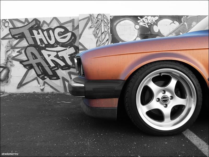 Wheels are Borbet Ts, 16x9 ET 15 with lots of spacing front and rear. If you want to run wide wheels, stretch, and the euro look, you have to follow through. The suspension, wheels, and spacing are the main reason I felt I could pull off some crazy exterior finish.