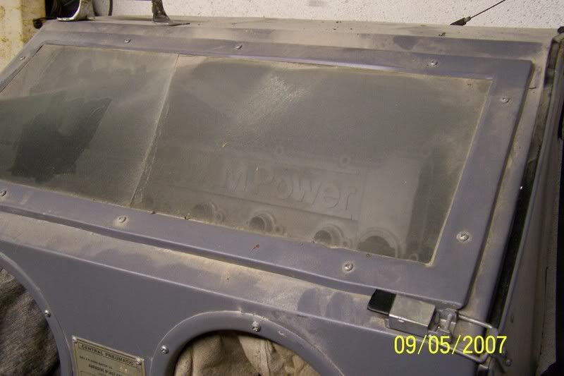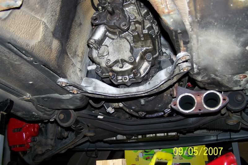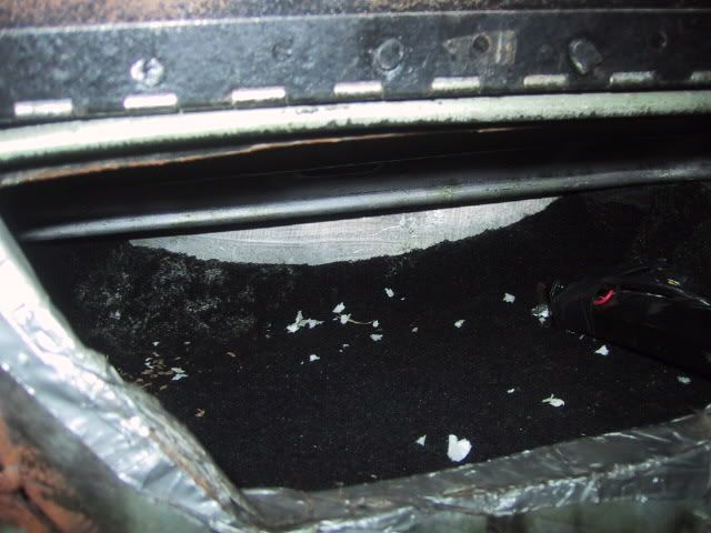 I got a little more done, i assembled the front seat, but i havent cleaned it yet( i had previously upholstered it) The drug hole is dead! Long live the drug hole!! The floor has permanently been patched and the new gas tank is ready to go up!!!! New tran's mounts are in, heavier duty than stock, but still good for street, the original right side one was completed ripped in half! I've also started sandblasting the valve cover, look how crappy my engine compartment looks, damn it needs a makeover. Thats it for now, less than a month to go....