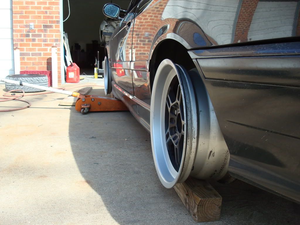 I just picked these up and was so excited I did a little test fit. Don't worry, the whole weight of the car wasn't on them, it was still supported by the jack a little. I'm currently looking for a set of Turbine covers, should be pretty cool: