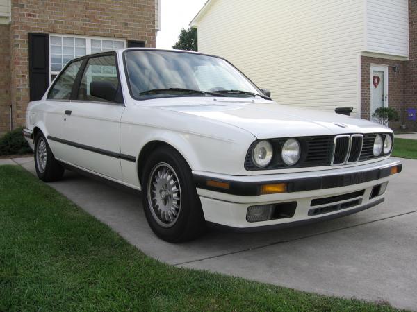 I just bought my first E30 about two months ago and I'm finally getting around to posting some pictures. I traded my rusted out 1993 GMC Jimmy and $1,500 cash for her. It's basiclly bone stock, with the exception of running Bilstein Sport shocks and Racing Dynamics springs (the older green ones, which I'm told are the preferred RDs). It's my daily driver for now, until November when I go to Texas for UPT with the USAF, then it'll become my new "project car". It's got 130,xxx miles on it and doesn't really have any "issues" other than what you'r expect out a 20 year old car (i.e. "used" seats, torn shift boot, mostly just well-used pieces). I've done a few things to it already (E36 window switches, black door pulls, painted the brake ducts, replaced the 6-button OBC with a digital clock) and I've got some plans for it in the days to come. Anyways, I'm used to wrenching on RX-7 TurboIIs, but I've been extremely happy with my purchase. They weren't lying when they told me that BMWs were fun to drive.