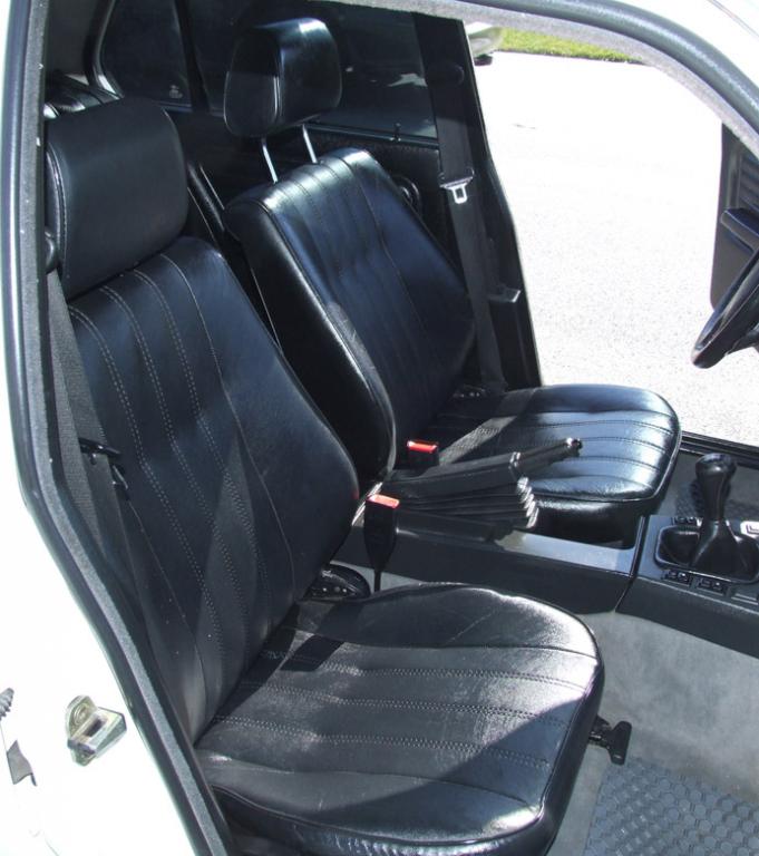 I thought they were leather, and then on closer inspection they looked/felt like vinyl (hard and stiff). I sprayed them with turtlewax F21 protectant stuff, and let it soak in for a day or two, and I am beginning to think they are in fact leather: