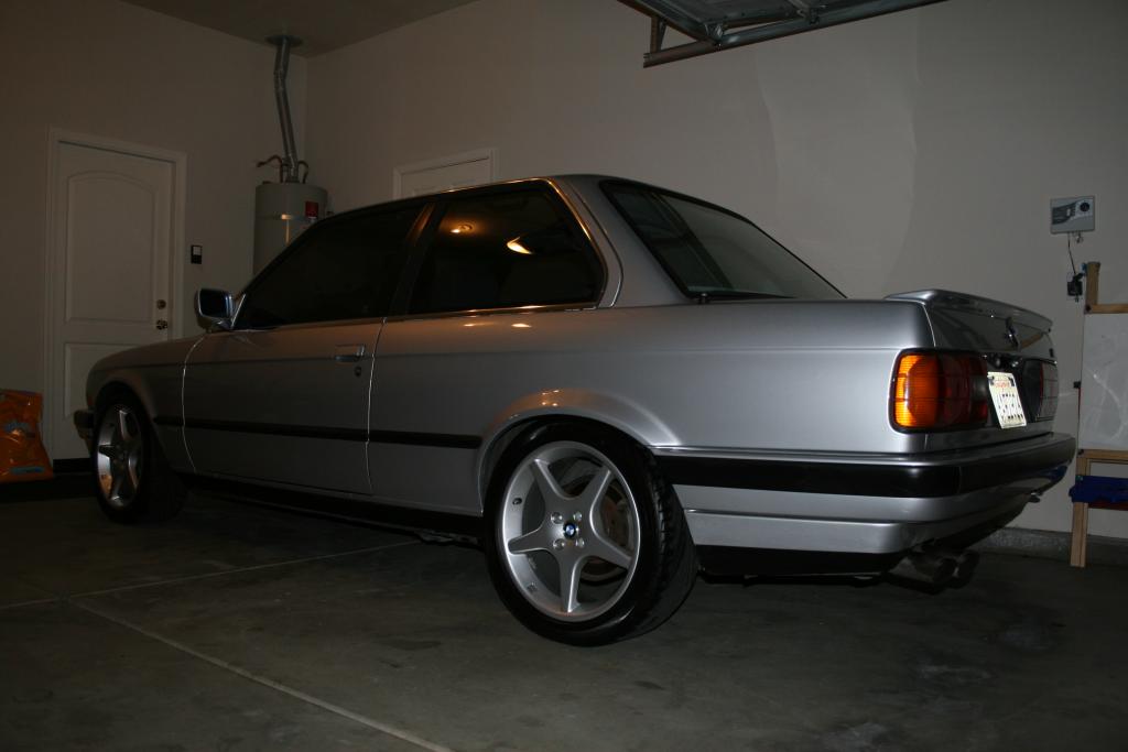 The car has 160k on it.. It came with the following. Momo steering wheel and shift knob and pedals. It also came with 6 way adjustable tokico struts and eibach springs. The car has a dinan exhaust, intake and performance chip. It idles like crap ----So the engine I am gonna go through and rebuild.. Need to get some 16" or 17" BBS's and drop it some more. Let me know your opinions , comments. My first E30.