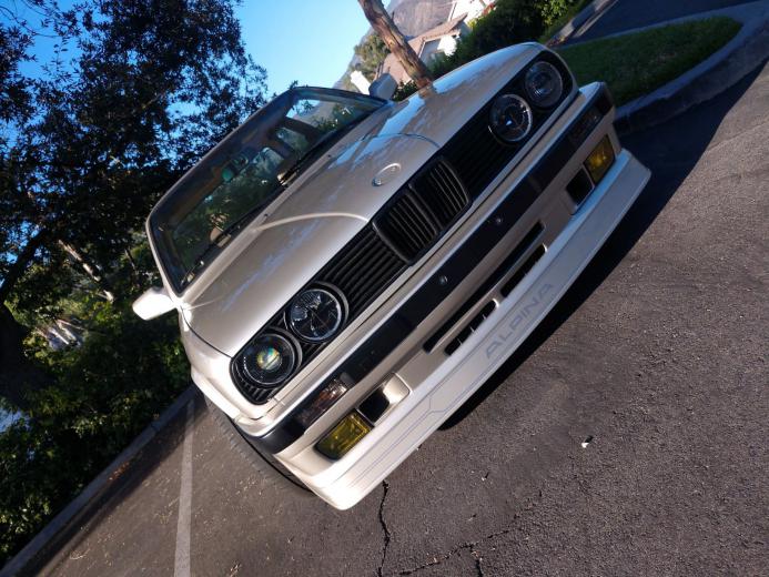 Getting back into the fold with my slow restoration of my BAT auction 88' is. Here is the link to the auction. https://bringatrailer.com/listing/1988-bmw-325is-11/ As you can see, the car was a clean exterior example with a hideous interior leather re-stain that looked more like brown 'rhea than the tan it should have been. Other than that it was a decent runner that was ready for the road as it sat. Previously and unfortunately, my awesome Alpine 89' 325i was rear ended by a hit and run driver on the freeway (actually he hit and ran but once I realized he ran I restarted the car and chased his ass down the off-ramp, pulled right in front of him and and brought the fear of god to him by grabbing him by his shirt shortly after which started to cry and say he was sorry, but I didn't care and had to sit and wait with this MOFO for 45 minutes until CHP finally arrived...annoying and frustrating to say the least) causing the rear bumper frame to be crushed pretty good and wasn't about to try and repair it so I decided to swap everything I had done to it to this car (sorry for the long sentence). Once I had the front end, rear end, interior and some cool accessories swapped over I sold the other car with the Champagne's guts in it and sat on it for a while. Charlamane the Dog didn't speak to me at first and it sat for a while and was contemplating selling the car. My Alpine was my first love and had spent so many hours polishing, waxing, replacing and rehabbing that we developed a special bond that is hard to beat. I was kinda having regrets about my rebound relationship. Fast forward to 3 months ago and met a fellow member who had just finished his Bronzit Alpina Tribute and had also been hit and totaled the car. He was also super bummed and parted out most of his car, of which I was able to use his sunroof, hood and front valence with an original Alpina valence already attached to it, all perfectly painted and ready to go. I was stoked while he was bummed, but he was happy to see it go to a home that would appreciate it. I only wish I was able to take his Alpina spoiler, but that was already claimed by someone else (if you know of one I am open to discussions...)