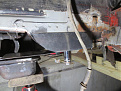 I malleted the framework into position and completed the plug welds. Using the threaded front subframe fixture from the damaged frame and a section of 2 1/4 inch steel tubing I created a new front subframe anchor. I positioned it by bolting the front subframe back in and placing a 1/16” shim between the anchor and the subframe and welded it on place.