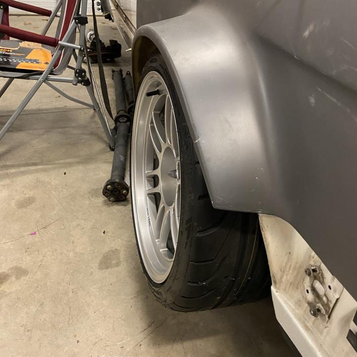 I spent my Sunday ruining the resale value of my E30. Only cursed at it a couple of times... Lots of cleaning up and welding to do in the rear, and I'm definitely not looking forward to doing it again on the passenger side... But here's how it should sit! This was the most significant part of the build so far and Its nowhere close to being a finished ordeal. I want it to all be as correct as my skills will allow before it leaves this shop.