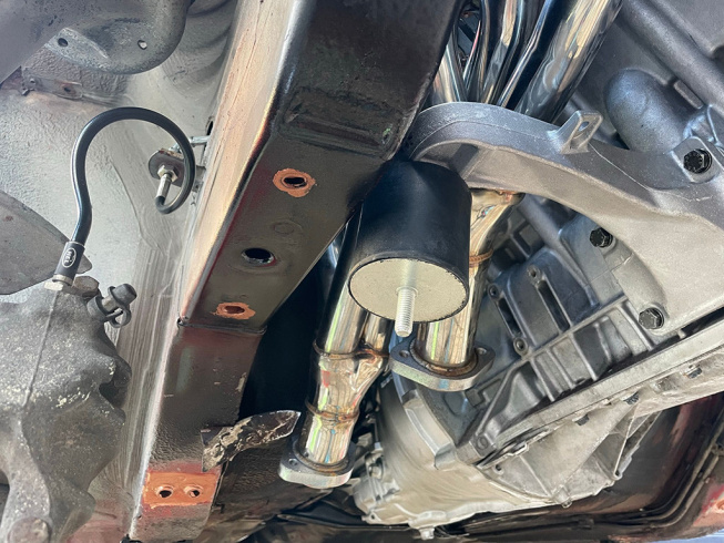 After mounting the engine blocks and the dashboard, I started with the cooling system, mounted the driveshaft and the IRP shifter (I don't have pictures of all this). The shifter allowed me to avoid cutting and welding the transmission mount and bolt it directly to the chassis with four bolts.