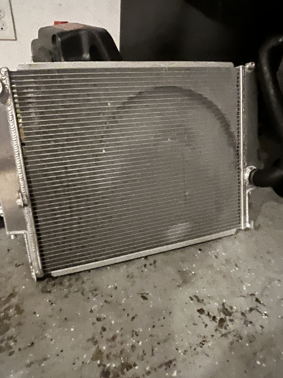 It has started to leak oil, and the oil cooler is bent
