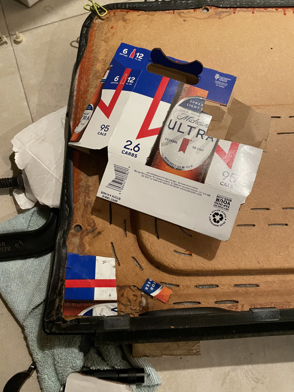 Since I had the door cards off it was time to fix the sagging corner on the drivers door card, I reinforced the backside of the pressboard material with some Michelob ultra and gorilla wood glue. This worked really well. I also reinforced all the clip holes.