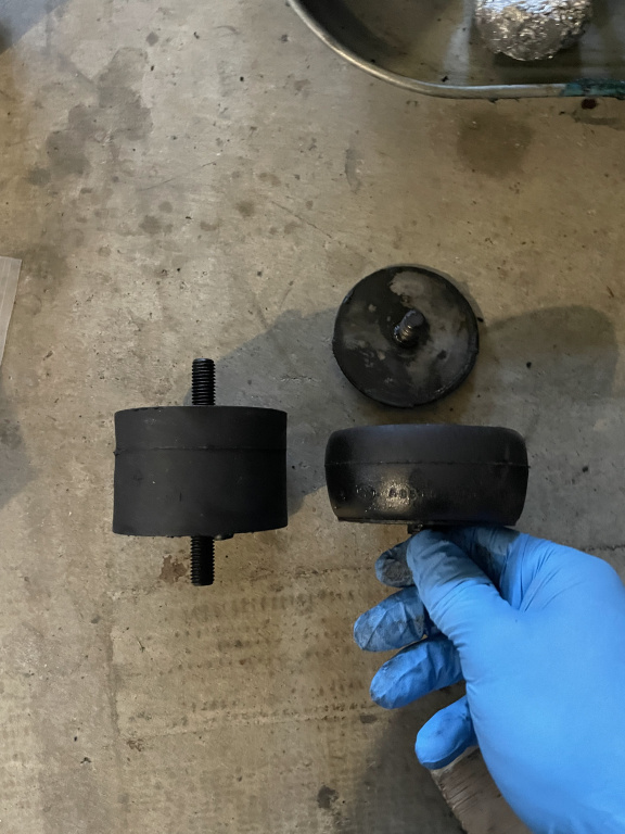 Replaced the motor mounts. Unbolted the motor mounts and jacked up the engine from the oil pan using a 2x4. The passenger side one was split into two pieces!