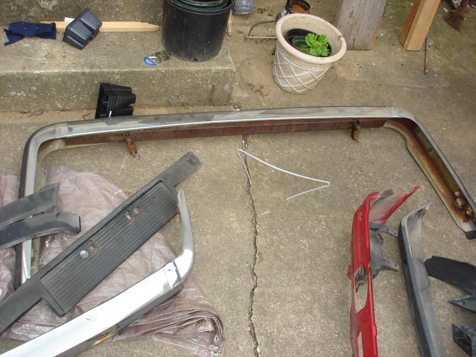 After more than 7 years of ownership I'm going to start the "change". I previously had euro bumpers that were painted black w/ a later valance. Now I am starting to gather things to do it somewhat correct. I don't have any pics (that I can find) of the car when I first got, but it looked nice. I then hit a roll of tar paper on the highway @ about 80 mph (it fell off the truck in front of me) and that started the downward spiral. So now it's time to fix stuff. Here we go....