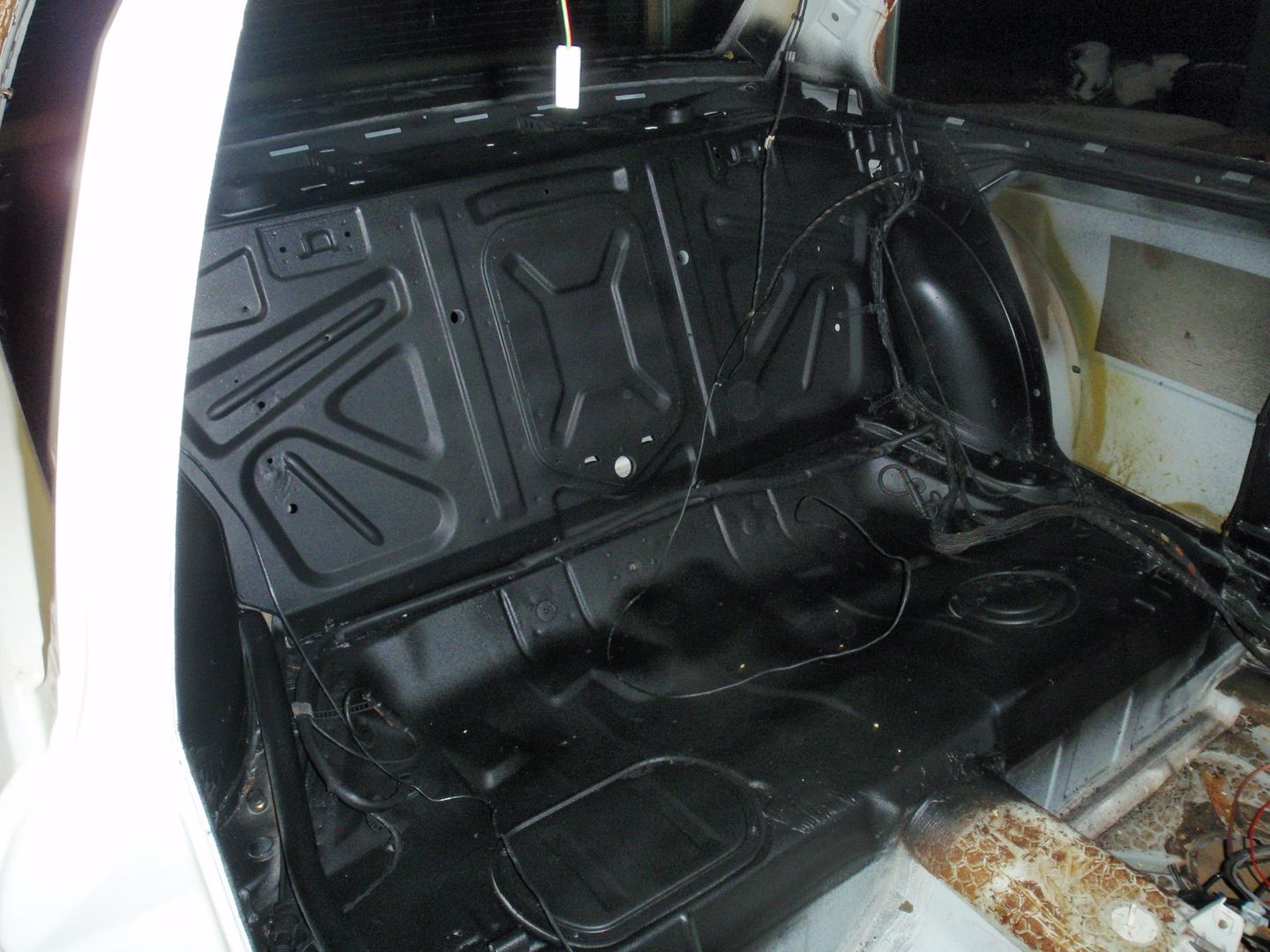 Made sure the back seat area and rear deck lid were completely clean...then went out to pepboys and picked up some spray on truck bedliner. Its textured and pretty tough stuff...I plan an spraying most of the interior with it.