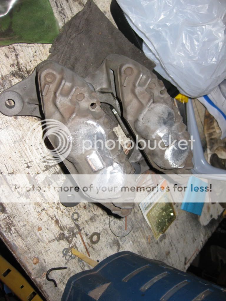Did a little work to the calipers for some extra clearance. I mocked the caliper up the the strut with a kopi on and without spacers the little nub on the face of the caliper literally fits between two spokes. I usually run 5+mm spacers in the front with those wheels and with the nub ground down a little but it shouldn't be a problem.