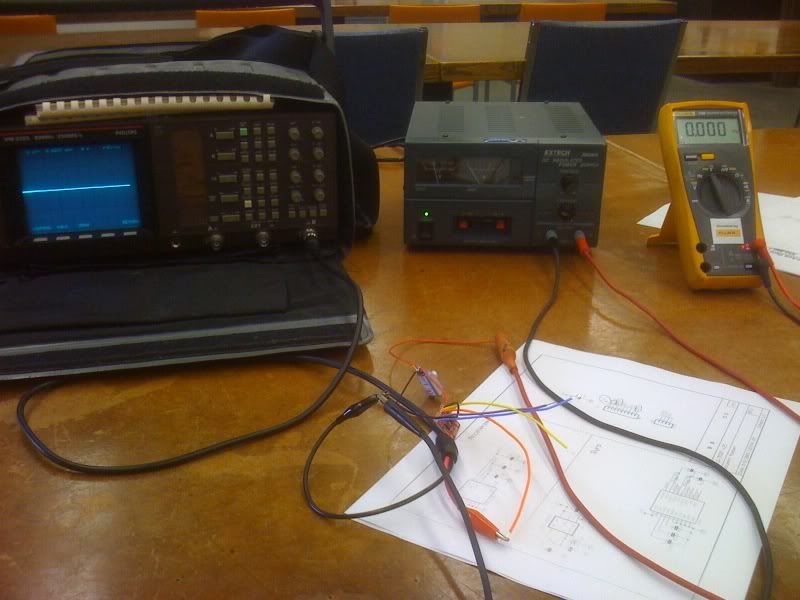I am finally all prepared to do the in-car testing. I've got the circuit all built and tested. I am using this Fluke scope/meter that is property of my school: