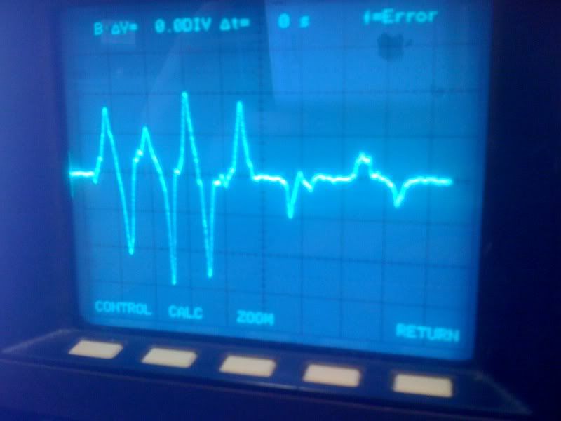 Here is a shot of when I was testing the sensors and trying to eliminate the noise in the circuit. Before having access to the Fluke data logger, I was considering using some $200 piece of shit digital osciloscope. I was using the old school scope in the picture to test consistency between the two. I have since abandoned that.