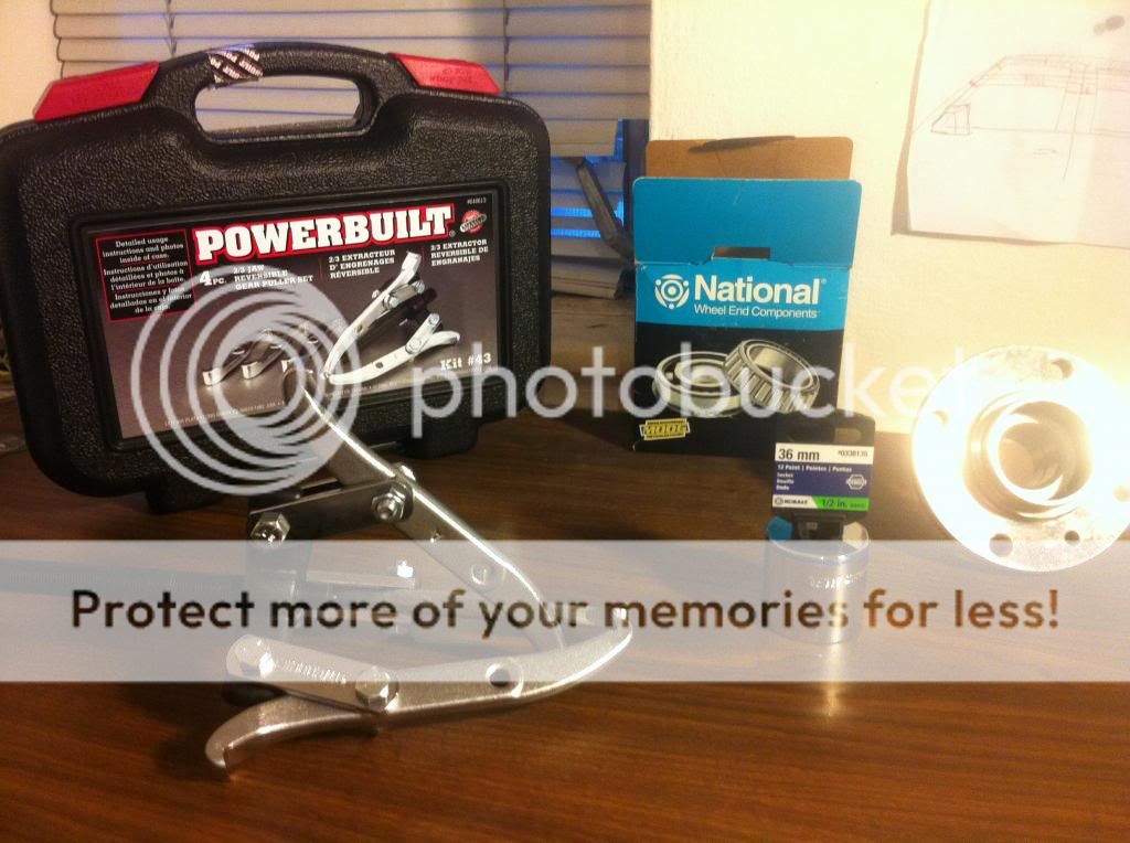 Quick overview of the special stuff I had to get. 36mm thin wall socket, 3 jaw puller, replacement Moog bearing.