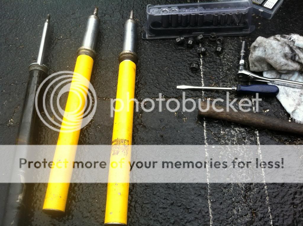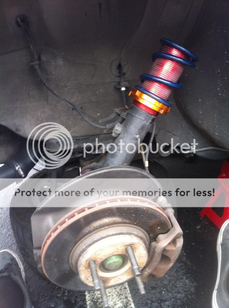 So in other news, I finally got around to putting in the front struts. The rear Bilsteins are blown, so I'll get them rebuilt later down the road, but I have some KYB gas-adjust shocks that are working just fine for now. I also swapped the front springs for some 4" hypercoil 400lbs ones I purchased from Einstein57. The car is much smoother now, I no longer feel every bump in the road, reflector, branch, or paint line anymore:pimp: