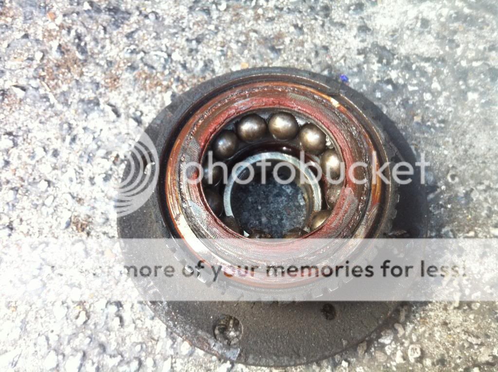 And here's all the old bearing stuff. The inner race got stuck on the spindle when I removed the bearing so I had to go back in for round II to get it off. Came out easy:D
