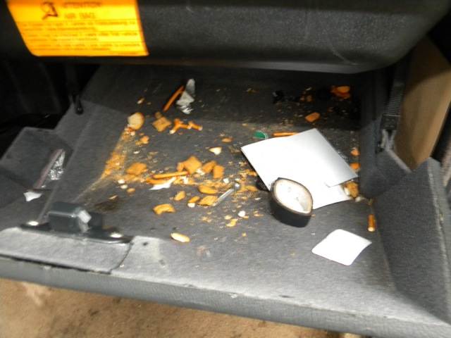 crackers in the glovebox? I need to get on cleaning my carpet. These stains are bothering me.